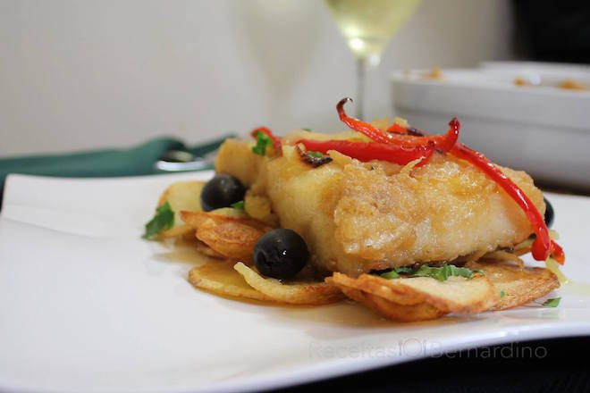 As postas do bacalhau são, primeiramente, fritas em óleo para alourar, e em seguida irão ao forno juntamente com as batatas. Estas podem ser fritas no mesmo óleo em que as postas do bacalhau foram fritas, para tomarem o gosto do bacalhau.