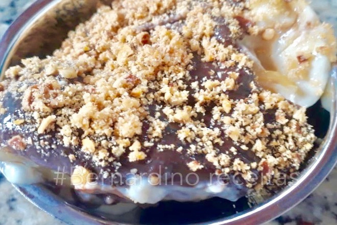 Na minha opinião, quando se usa algum fruto seco em certas sobremesas elas ficam muito mais deliciosa, nesta por exemplo, além do amendoim pode-se usar as nozes, o pistache ou a castanha do Pará, confesso que esta última combinação é a minha preferida, pois faz-me lembrar de um gelado com o nome de carimbó que tomei na sorveteria Cairu na Estação das docas em Belém do Pará.