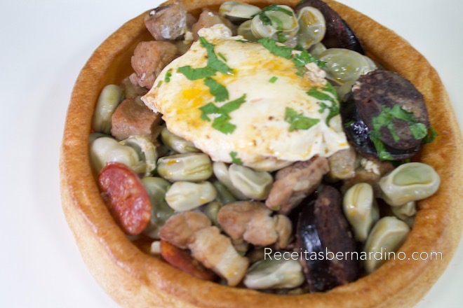 E foi a pensar nas modificações que a minha receita teria em relação a original que, então, a denominei de Favas à Bernardino para mais tarde não vir a ser criticado e acusado por mudar a nossa tradicional receita. Espero que, assim como eu, todos que a prepararem gostem imenso.
