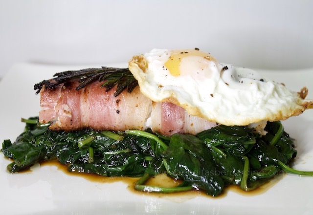 Finalmente, para acompanhar a receita de filete de pescada com bacon salteei espinafre usando o mesmo azeite em que o peixe foi frito, que ficou aromatizado com bacon e o alecrim, entretanto, se não gostar do espinafre, pode substituí-lo por outros legumes ou vegetais, ou até mesmo preparar outro tipo de acompanhamento para a receita.
