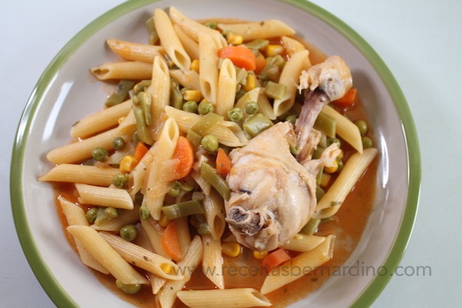 E isto é óptimo para quem gosta de massa assim como eu, logo perceberá que a massa combina perfeitamente com frango, e não tem como errar quando for cozinhar para si ou para a família, pois trata-se de comer do dia-a-dia, então, vamos lá preparar esta deliciosa jardineira de frango?!