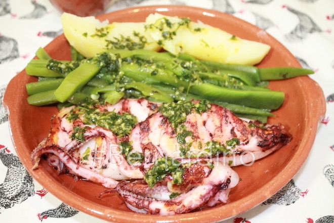 E esta receita, por exemplo, de lula grelhada com batata cozida e feijão verde não foge à regra acima mencionada, ou seja, é um comer de preparação rápida e fácil, porém, o diferencial fica por conta do delicioso molho verde que adicionamos na parte final, cujo objetivo é deixar o prato mais saboroso, pois traz a acidez e a gordura necessárias ao prato.