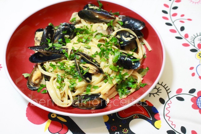Toda gente sabe que eu gosto imenso de esparguete, tenho várias receitas que leva o carboidrato como um dos ingredientes principais, já falei aqui isso, e também disse os motivos, dentre os quais, a rapidez no preparo, por ser versátil, acompanha e combina com diversas proteínas. E a proteína escolhida para esta receita foi o mexilhão, a receita é Mexilhões com esparguete.