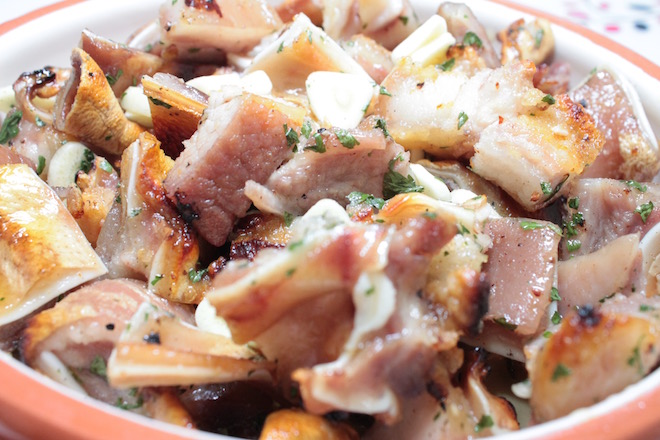Passado os 5 minutos, sirva o petisco de orelha de porco acompanhado de um bom vinho ou uma cerveja