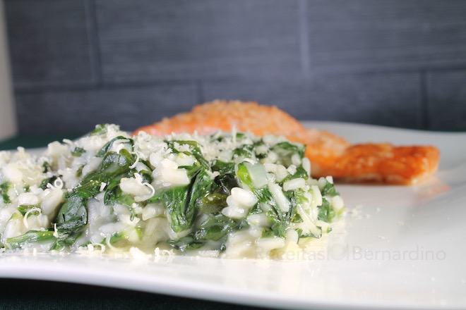 A culinária italiana é uma das minhas preferidas, por isso resolvi preparar este Risoto de espinafres que ficou delicioso, e como trata-se de de um risoto que possui um dos ingredientes principais o espinafre, preparei um salmão assado para acompanhar, que por acaso combinou muito bem os sabores.