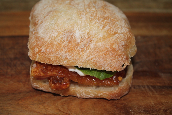 Está pronta a Sandes de tornozelo de porco para ser consumida.