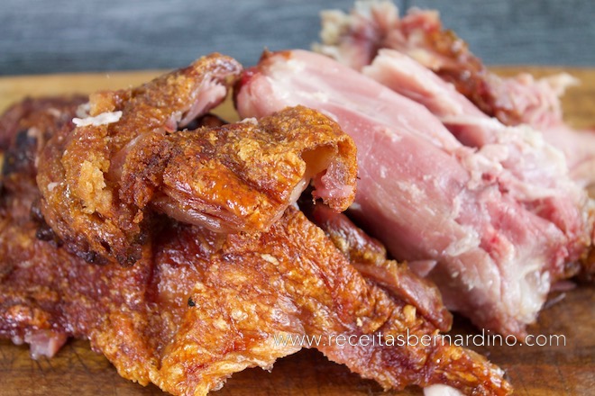 Separe a carne do osso, e verifique como fica suculenta por dentro e estaladiça por fora.